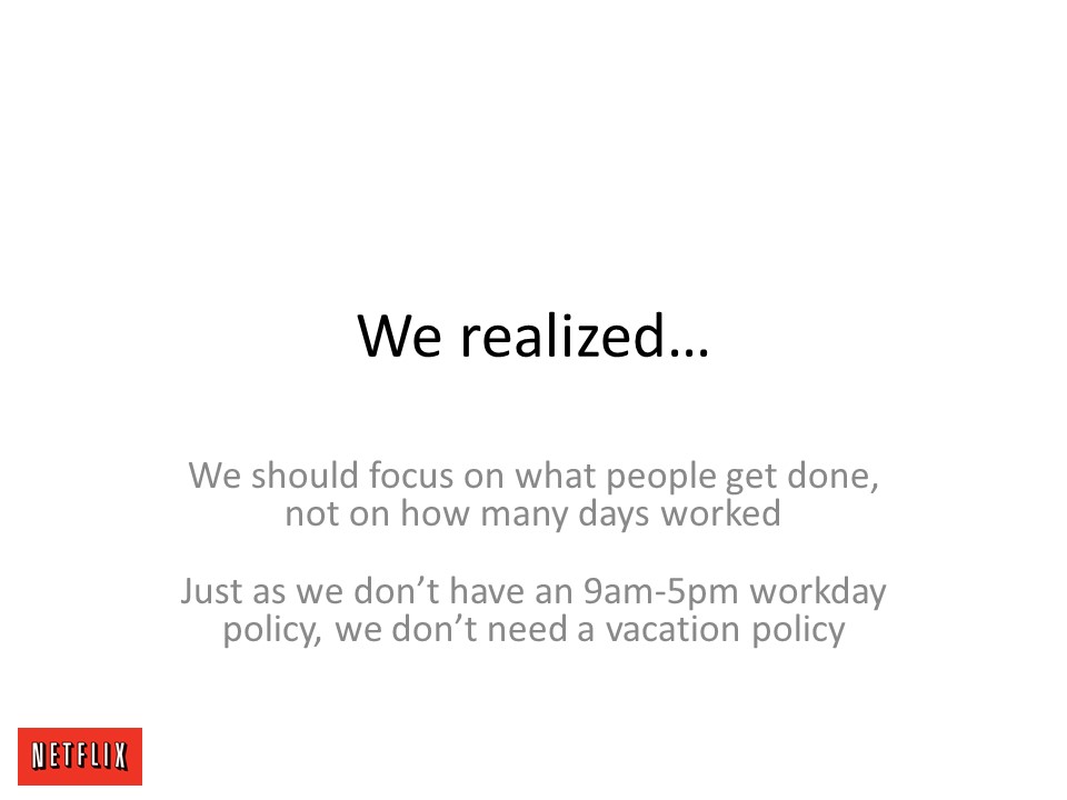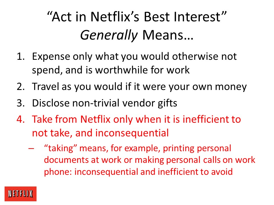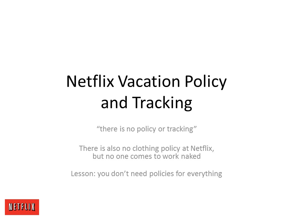 10. Netflix keeps things very simple with regard to Holiday, Gifts and Expenses policies – again preferring freedom and responsibility. For example, take as many days off as you need.